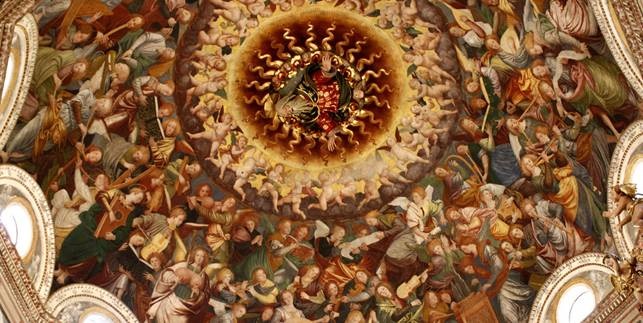 UN ASCOLTO DI ARTE E UNA VISIONE DI MUSICA – La particolare regia del concerto – oltre che sugli interpreti e sulla musica – indulgerà spesso sui contenuti artistici, realizzando una vera e propria visita virtuale e spirituale del luogo sacro. Sarà così ammirare da vicino la celebre cupola, vera e propria rappresentazione in terra del Paradiso. Un luogo ideale per la raffigurazione della musica. Ribattezzato Il Concerto degli Angeli, rappresenta una teoria di angeli intenti a creare musica. Attenzione particolare anche per le statue lignee di Andrea da Milano, rappresentazione in grandezza naturale della Via Crucis, la Passione di Cristo. Questi capolavori dell’arte creano una fusione di rara efficacia con la musica barocca e vibrante dello Stabat Mater di Pergolesi.